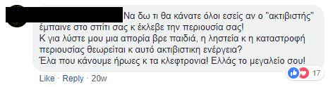 Έχουμε ξεκάθαρη περίπτωση αυτοδικίας. Οι συγκεκριμένοι έκριναν ότι επειδή ήταν σε κίνδυνο η περιουσία τους μπορούσαν να προβούν σε οποιαδήποτε πράξη χωρίς στάθμιση των δικαιωμάτων.