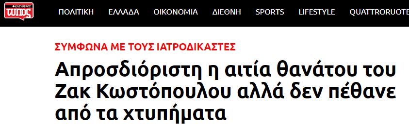 Πριν καν βγουν οι τελικές αναφορές για το λεγόμενο μαχαίρι, της τοξικολογικής ανάλυσης αλλά και της νεκροψίας συγκεκριμένοι σταθμοί, δημοσιογράφοι και εφημερίδες δημοσιεύουν…